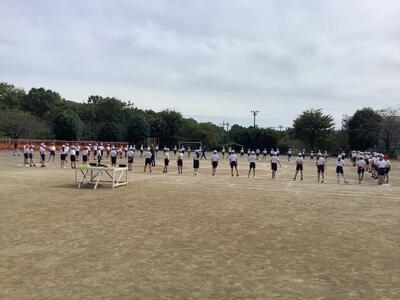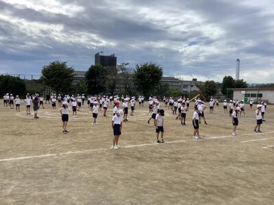 6年生を中心に、朝から集会の準備が校庭で始まりました。