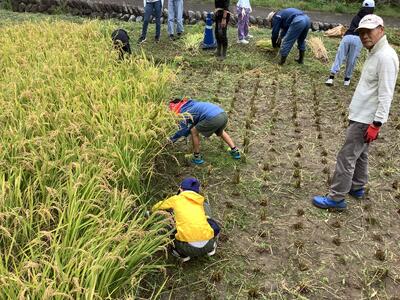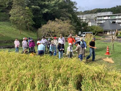 6月に田植え体験、7月のカカシ作りを経て、本日稲刈りをしました。首を垂れた稲穂を前に、鎌を使って上手に稲刈りをしてきました。田植えの際にもお世話になった農家の方、自治会の皆様、市役所の皆様のおかげで貴重な体験をさせていただきました。ありがとうございました。