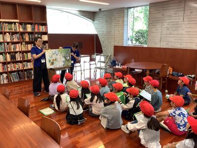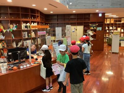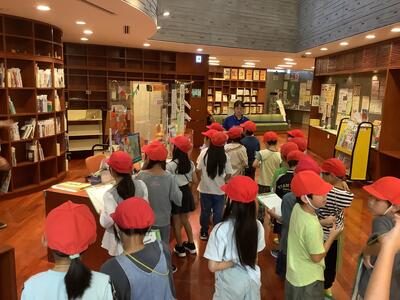 町探検の一環として、唐木田図書館を訪問した2年生。