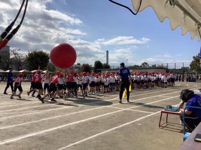 全校競技です。赤も白も上手に大玉を運んでいました。良い勝負となりました。