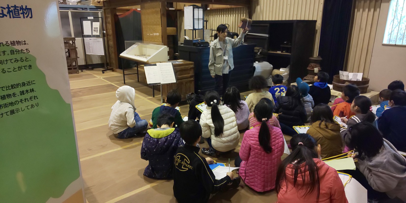 3年生は社会科見学で多摩市文化財資料室に来ました。昔の暮らしの様子や道具を教えていただきました。