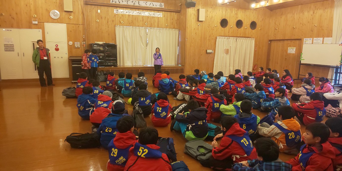 退所式が始まりました。少年自然の家のみなさんに感謝の気持ちを伝え、スキー場に向かいます。
