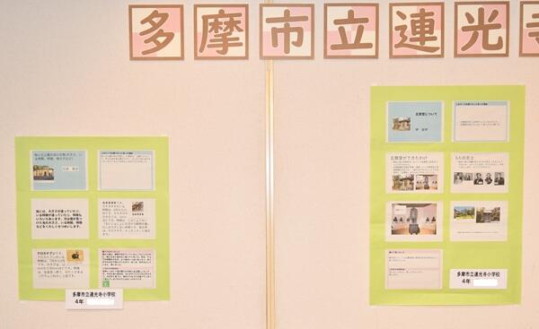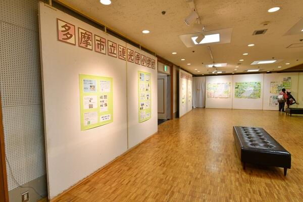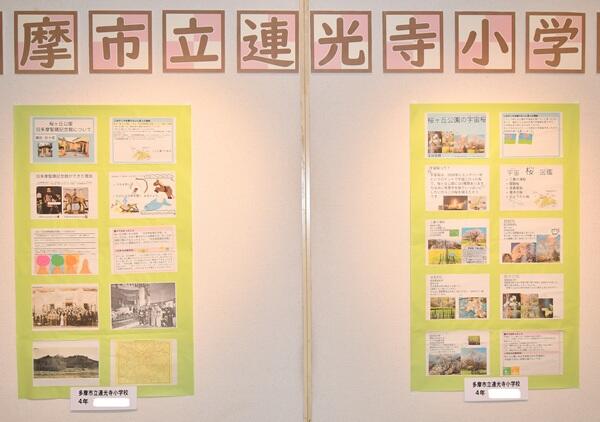 近隣4つの小学校の児童が調べた多摩・聖蹟桜ヶ丘周辺のみどころが詰まった作品を展示しています。
