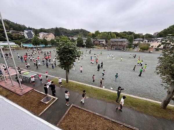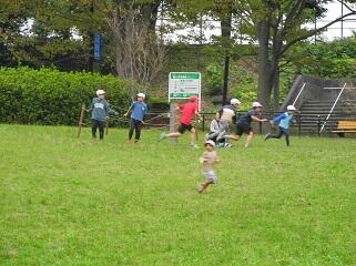校庭、大谷戸公園、桜ケ丘公園など、各グループで希望した場所に行って、決めた遊びを行うというものです。