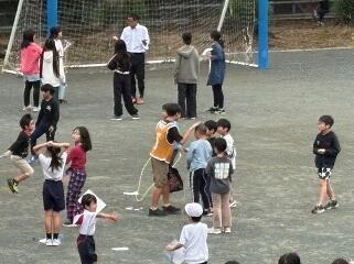 副校長先生が縄跳びが得意なので、5年生と一緒にチャレンジしています。