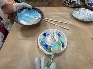 朝、昇降口で5年生と話していて、図工でガラスを用いた陶芸を行うことを聞きました。
