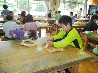 図工室から「トントン」と途切れることなく金づちを叩く音が聞こえてきました。