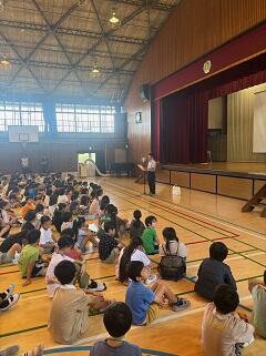 朝は、休み前集会として、夏休みの過ごし方を全校に話しました。