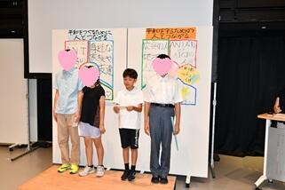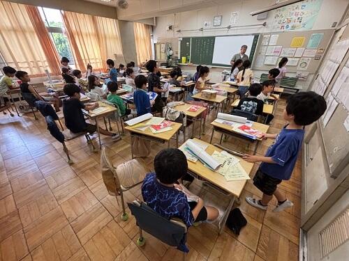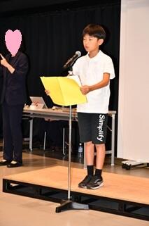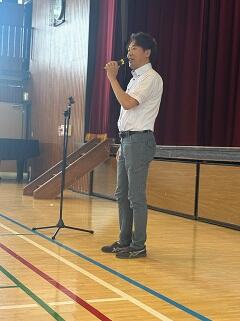 校長からは、1つ目に、学校だよりにも書いた、TPOにあった行動ができる子供の姿について、夏休みは外で様々な人と出会うことが多いので、このようになれるといいなという話。