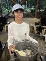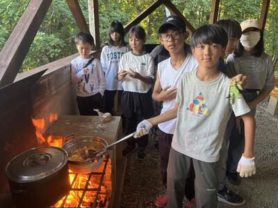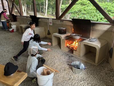 釜戸チーム、ご飯チーム、カレーチームにそれぞれの班で担当を分けていました。