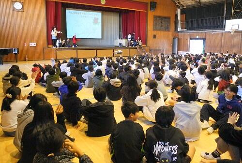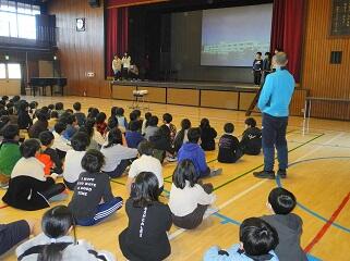 が、やはり予想通り体育館は寒かった・・・(*'▽')。短時間の集会です。