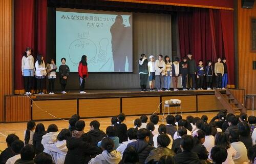 今朝の放送委員会は、対面での集会で練習していましたので、体育館に集まって行いました。
