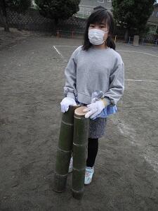1年生。先生が掛け声をかけて、タイミングを計っています。