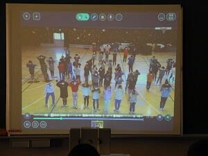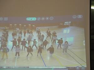 4年生は、黒板アートと6年生の教室を掃除した様子を、早回しでコミカルに紹介しました。