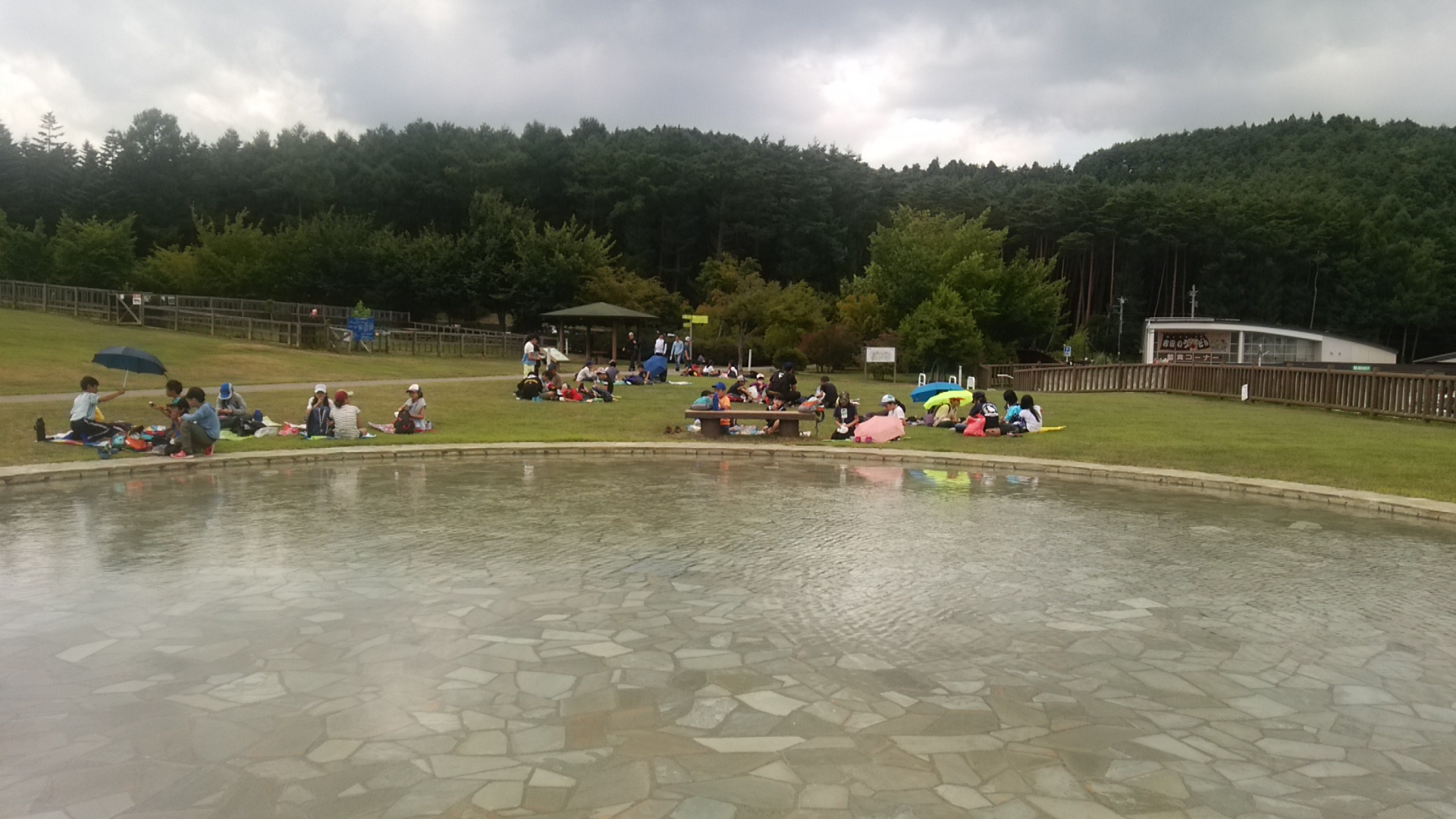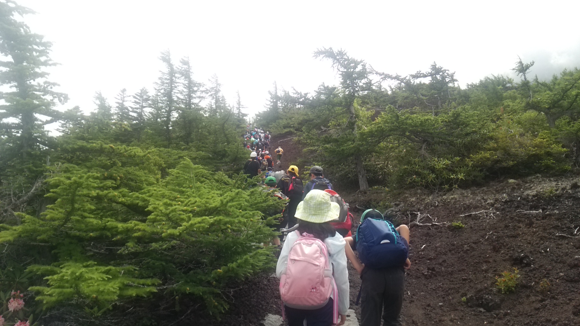 富士山レーダードーム館前の広場で昼食です。全員元気です。この後、見学です。