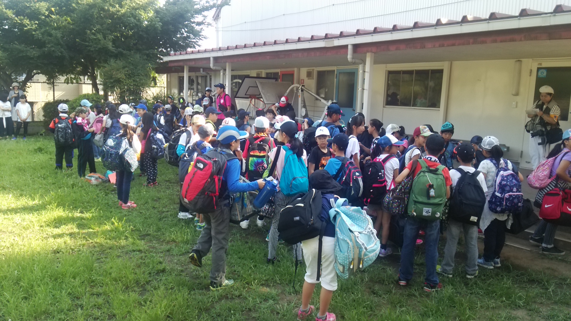 本日の1~4校時、4年生は多摩川で活動を行いました。今回は魚やエビなどを捕まえるガサガサや植物の観察などを行いました。
