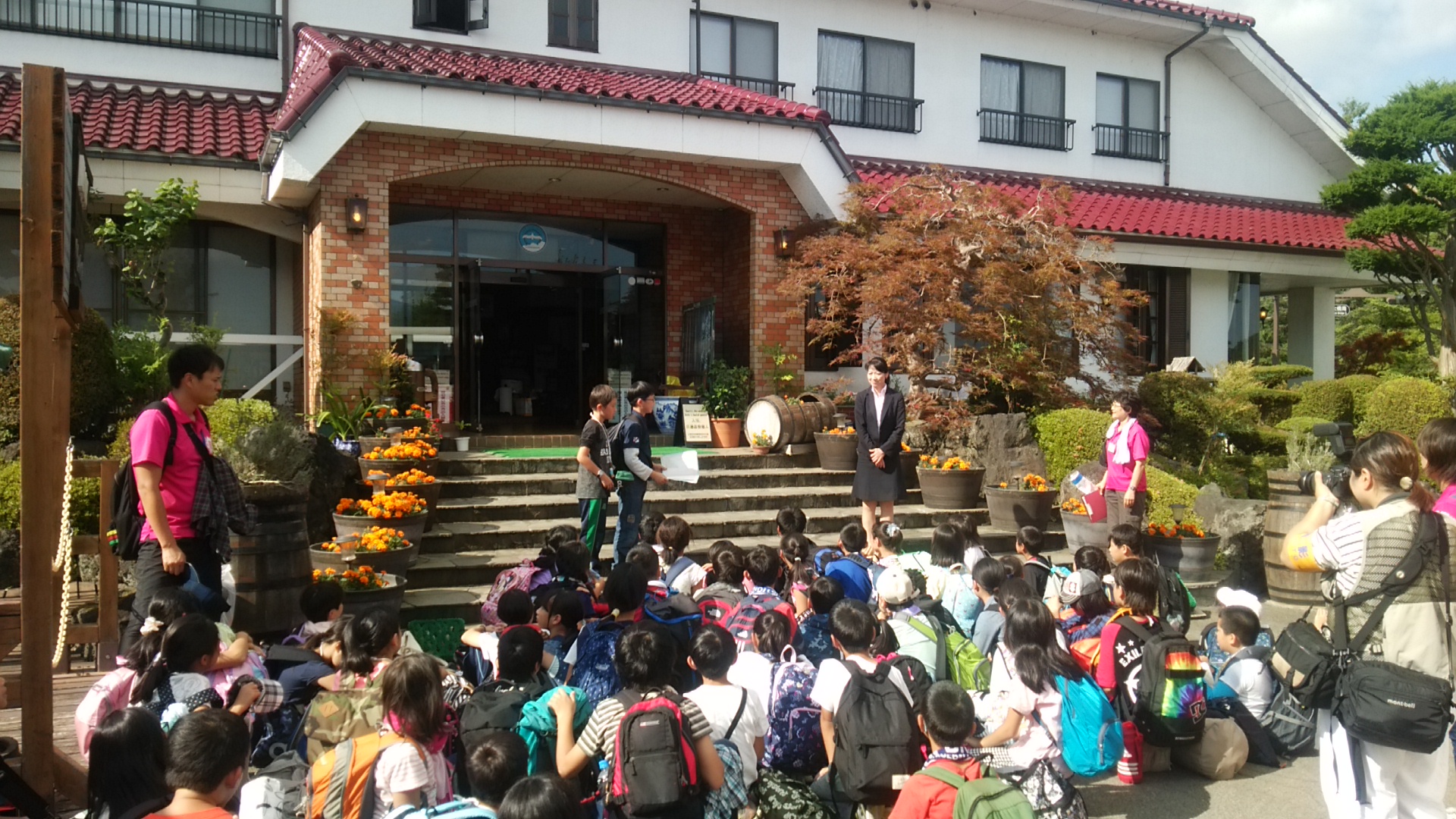 河口湖レイクサイドホテルに到着しました。開校式の様子です。全員元気です。