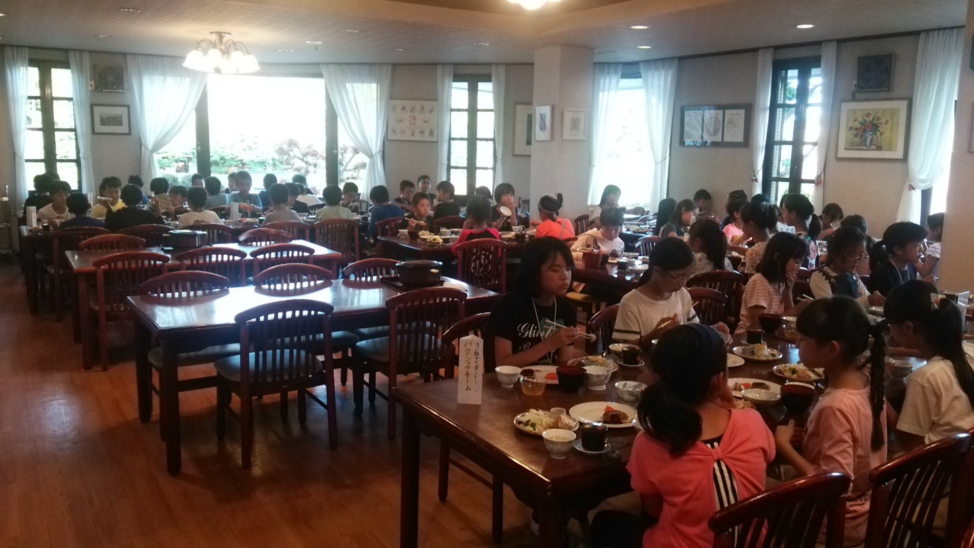夕食の時間です。豪華なメニューです。夕食後は夜レクの予定です。本日の報告はこれで終了します。また明日の報告をお楽しみに。