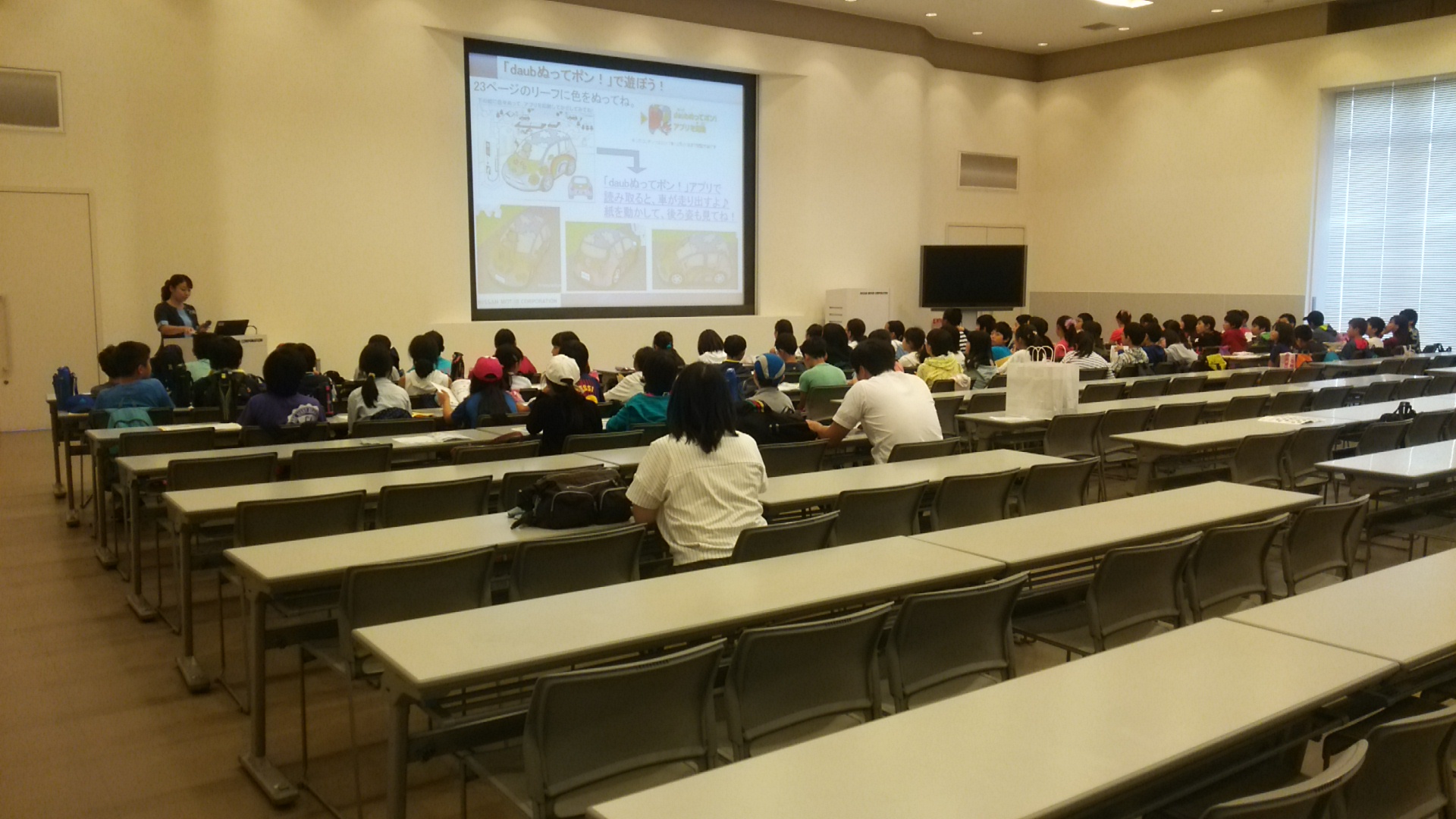 オリンピック・パラリンピック教育の一環として、9月8日にロンドンオリンピックシンクロナイズドスイミング日本代表の足立夢実選手による、4~6年生に対する講演会を実施しました。その中で逆境に負けず、夢に向かいこつこつ努力を続けることの大切さを学びました。その後、足立選手が監督を務める国士舘大学シンクロ部の学生による実技見学会を2部制でおこない、全校児童や教職員、保護者、地域の皆様がシンクロの技の解説を聞いたり、曲に合わせたシンクロの演技を見たりしました。浅いプールにもかかわらず、迫力の演技に圧倒されました。最後は6年生と給食交流をおこない、子供たちにとってアスリートと触れ合う有意義な一日となりました。