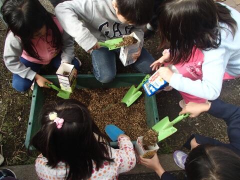 昨年度に引き続き、ニッセイ緑の財団が主催するドングリ学校プロジェクトに、今年度も一年生が参加しました。被災地にドングリの森をつくる目的で、ドングリの木を学校で育て、2年後に苗木を被災地に送るというプロジェクトです。今後、水やりや草ぬきをしながら育てていきます。保護者の皆様にもご協力をいただき、ありがとうございました。