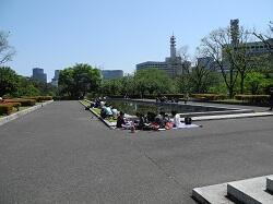 国会議事堂を後に、道を挟んだところにある国会前庭で昼食をとります。