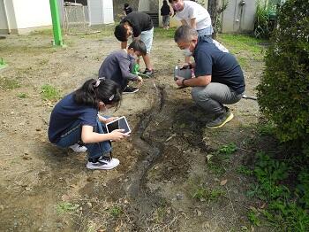 本を調べる子、タブレットで調べる子、インタビューする子、実物を観察する子、