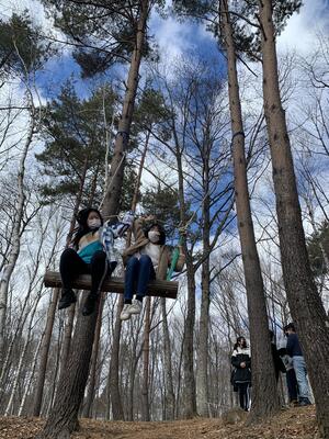 体育館では、レク係が企画して、大縄、借り物競走、氷鬼をしました。