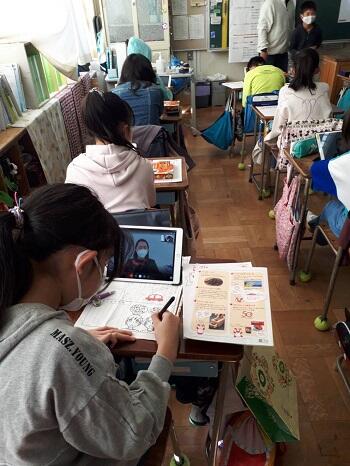 実験的な要素がある企画ですので、当日は、「味の素株式会社」担当者様、企業と学校との取次会社の方、多摩市教育委員会の担当者など、多くの方が見守る中での実施となりました。また、もしものトラブルに備えて、「ポケットWi-Fiルーター」も先方に用意していただきました。ありがとうございました。