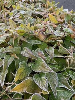歩道の草にも霜が張り付き、とてもきれいでした。いよいよ冬到来ですね。
