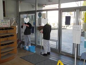 都立桜の丘学園高等部の生徒さんたちが、定期的に玄関の窓清掃に来てくださっています。