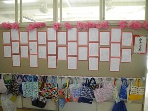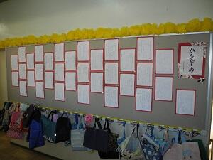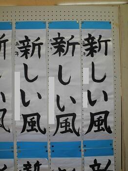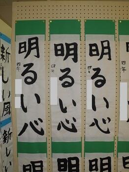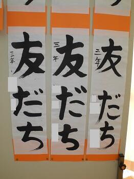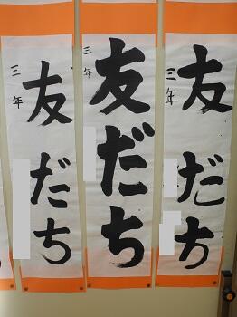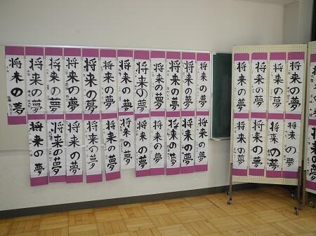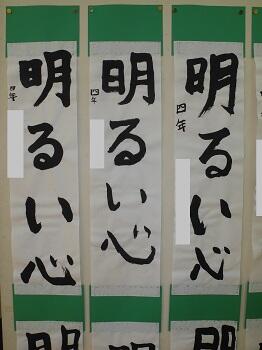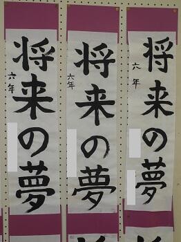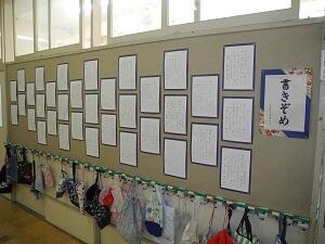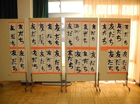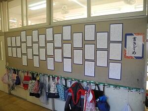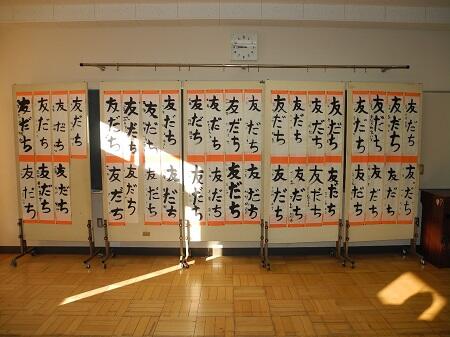 1,2年生は硬筆で、教室の前に展示してありますが、3~6年生は毛筆で、特別活動室にまとめて展示してあります。