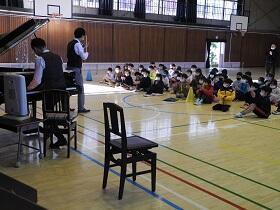 本当でしたら、全校児童に聴いてもらいたいところだったのですが、密を防ぐため、ひと学年ずつとして、1,2,3年生が1時間ずつ鑑賞しました。