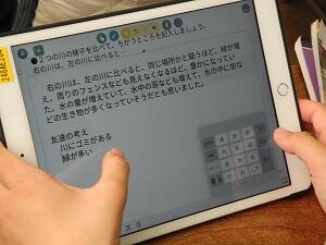 課題に対するノートへの書き込みは、ロイロノートというアプリを使って、その場で先生に提出します。この提出した記述は、教室の全員が見ることもできます。