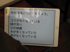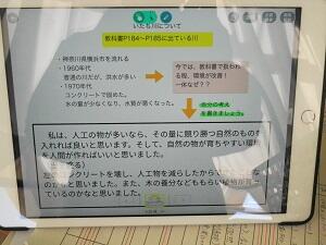 事前に用意してあった画面上のワークシートに、子供たちが考えを書いていきます。