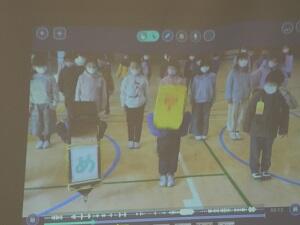 1年生の教室を覗くと、昨日体育館で撮った動画を試しにみんなで確認していました。