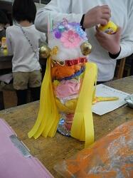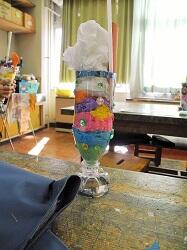 2年生が図工で「ペーパーフラワー」と題して「パフェ」を作っています。