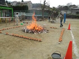 その後、正方形に垂木で囲いを作って、その中に薪をくべました。