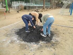 火がだいぶ弱くなってきたところで土器を取り出し、消火しました。