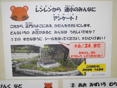 PTAの花壇ボランティアが、校門のところの花壇整備を計画してくださっています。