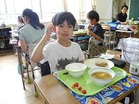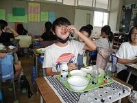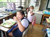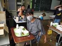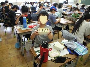 遠足が延期になった3年生は、涼しい教室でお弁当になりました。