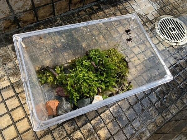登校時に虫かごを持ってくる子供たちがたくさんいるのが連小の特徴でもありますが(笑)、今朝6年生女子が持ってきた虫かごは、本当に箱庭のようでした。
