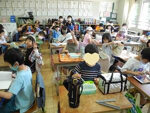 4年生に限らず、夏場の校外学習の際は、必ず忘れずに水筒を持たせてください。