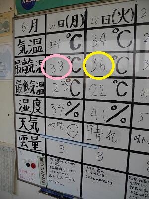 今日は、12時の段階で気温が35.5度になりましたので、昼以降は外遊び、外体育は行いませんでした。