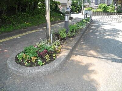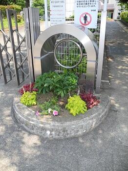 一方、涼しいうちにと今朝9時からPTAの花壇ボランティアの皆様が校門前の花壇の整備をしてくださいました。