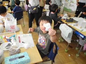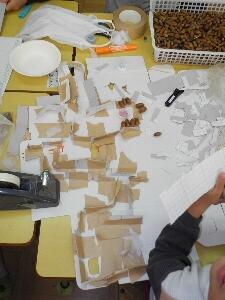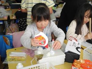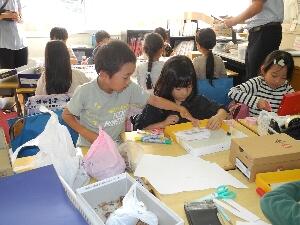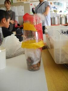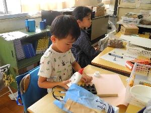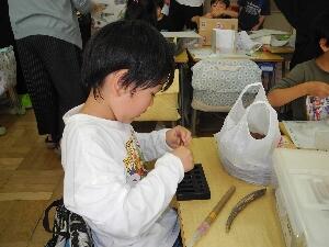 授業自体は秋の自然素材を使ったおもちゃの工作ですが、この授業までには、何回も校外にでかけてその素材集めを行っていました。