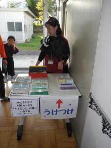 まずは受け付け。1F特活室の廊下の棚に、カバンや水筒を入れて受付をします。