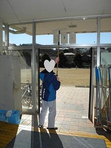 都立桜の丘学園高等部の生徒さんたちが、定期的に玄関の窓清掃に来てくださっています。