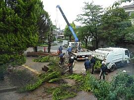 2021/7/5 ロータリーのゴールドクレストを伐採します