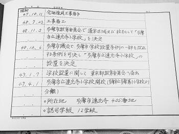 いろいろお話をしていると、まだ多摩村だったころの連光寺小の創立のころの話になりました。