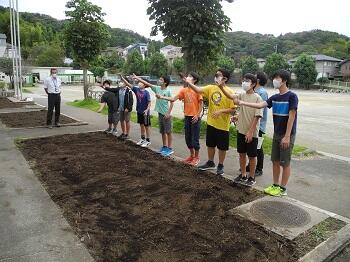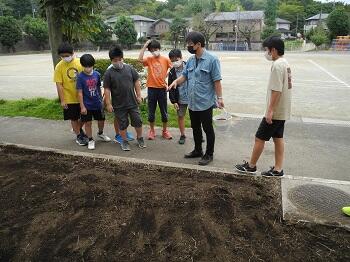 9月30日(木)の6校時の委員会の時間に、環境委員会の児童たちがレンゲの種を蒔きました。
